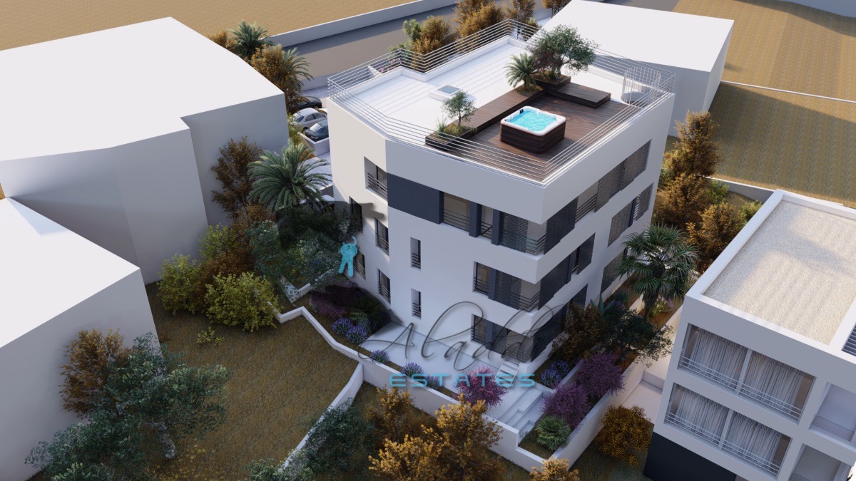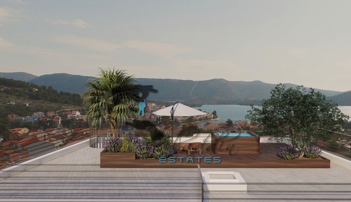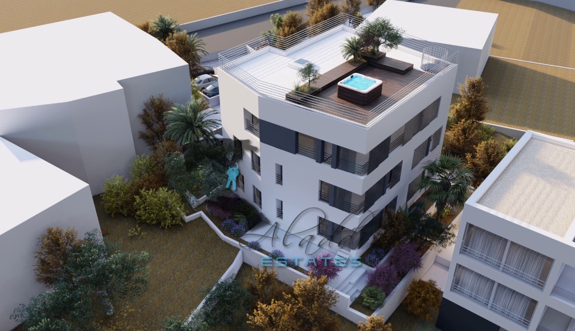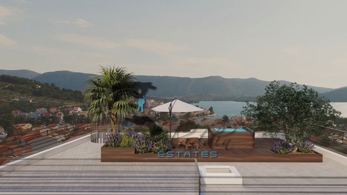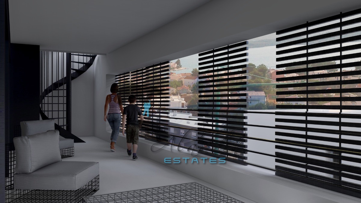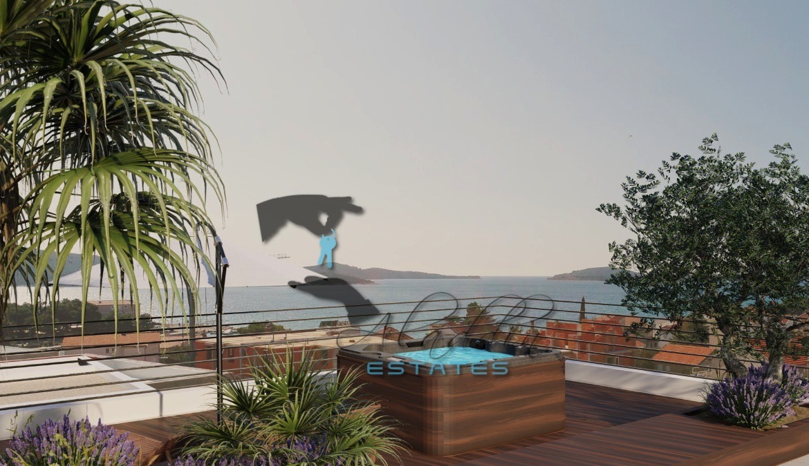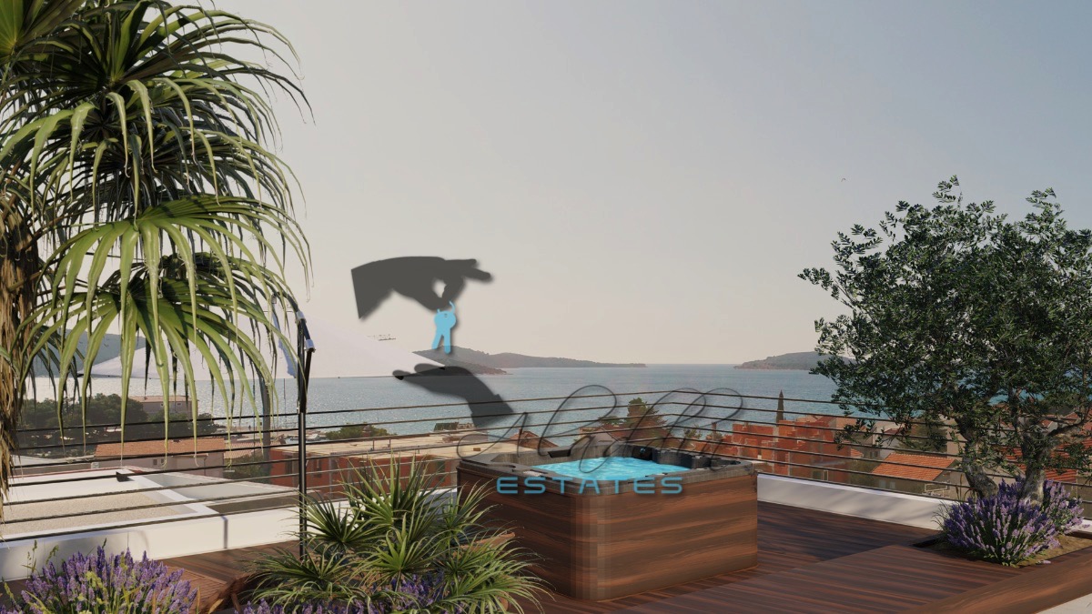 Tu je i super raskošan penthouse stan na drugom katu, koji obuhvaća osjetno veći dnevni boravak, blagovaonicu i kuhinju kao cjelinu, dvije veće spavaće sobe, dvije kupaonice, hodnik, garderobu, jednu veliku i jednu manju lođu, iznimno prostrano spremište u podrumu, dva parkirna mjesta, te spektakularnu krovnu terasu od 145.81 m2 sa sunčalištem i jacuzzijem. Sveukupno donosi 151.90 m2 neto stambenog prostora po cijeni od € 607.600.