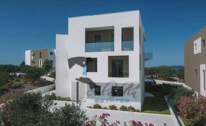 Modern residential building being newly constructed in Brodarica near Šibenik, with six apartments over three floors, and part of an attractive fenced settlement of four buildings. Two apartments are available on the ground floor, each with two bedrooms, living room, dining room and kitchen as a unit, bathroom, hallway and covered terrace. Apartment AP1 has 57.18 m2 of interior space, a terrace of 12.90 m2, and surrounding garden area of 95 m2, all together 75.63 m2 of net living area with calculated coefficients. Its price is €211.764. Apartment AP2 comprises 65.67 m2 of interior space, and includes a terrace of 14.86 m2 and 40 m2 of garden space, with the total of 79.60 m2 net living space with calculated coefficients. Its price is €253.500. Each apartment includes one parking space.