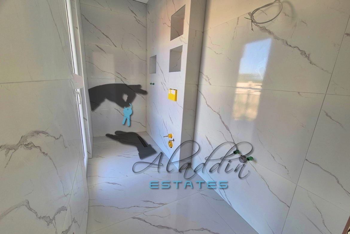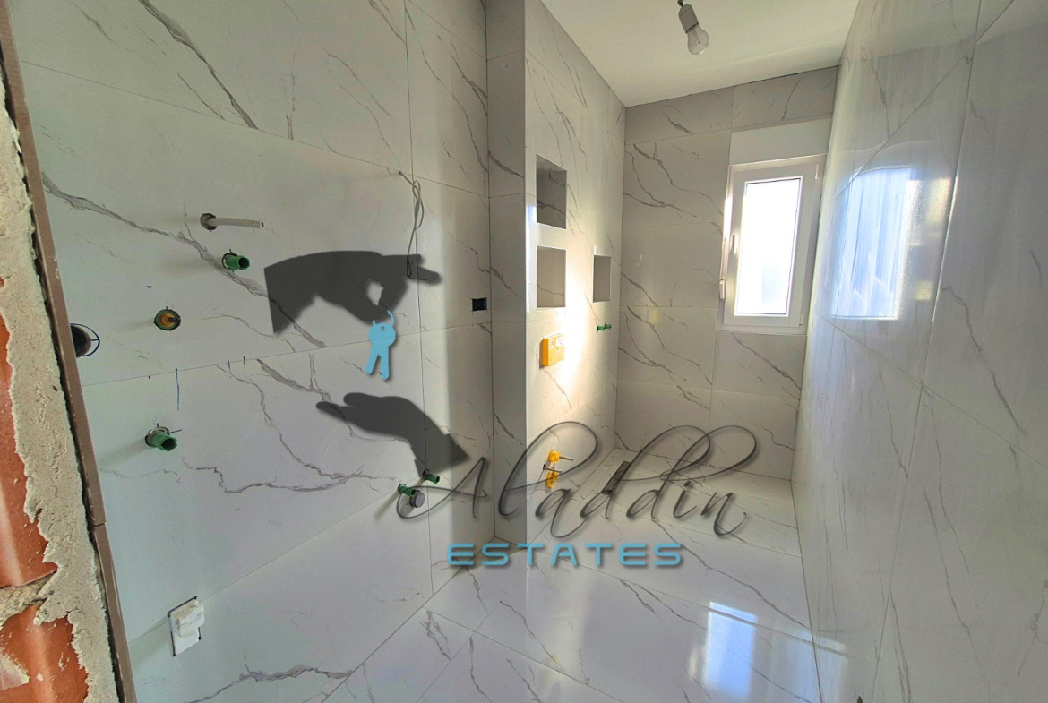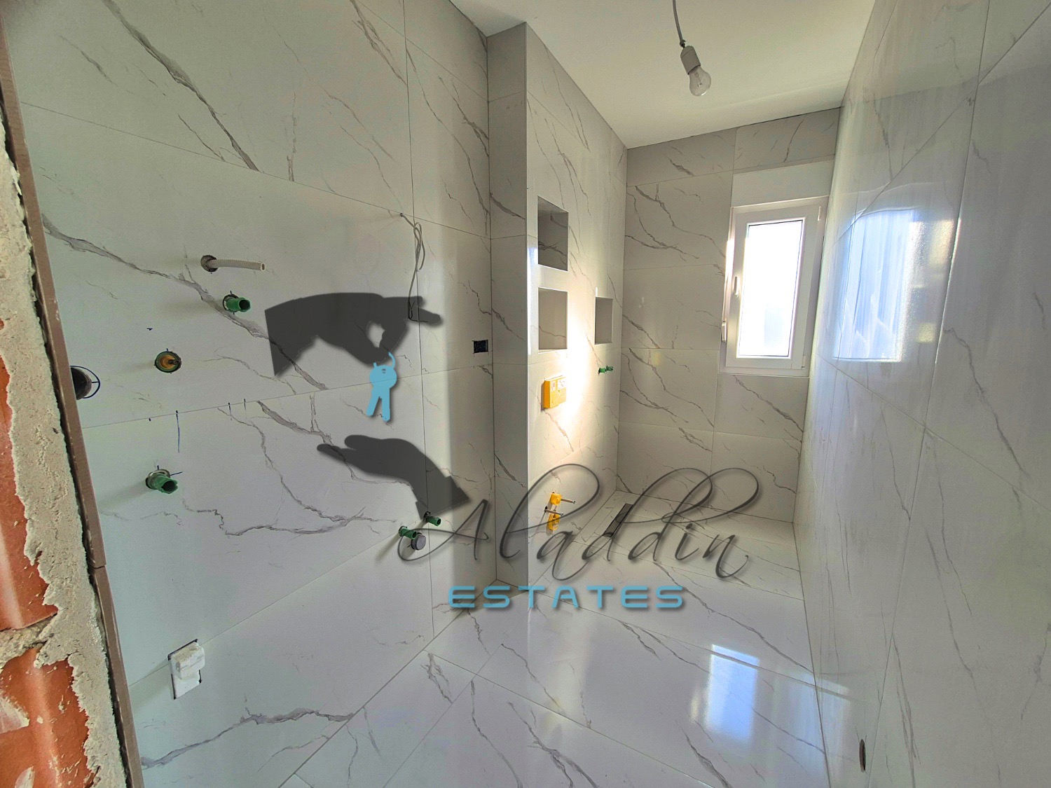 The apartment is built to the highest of standards and exceptionally well equipped, including air conditioning unit in every room, underfloor heating in the living room and bathrooms, first-class Alu/PVC carpentry with triple-layered insulating glass on all windows and balcony doors, electric shutters on the balcony doors, modern tiles throughout the apartment, superbly equipped bathrooms, security and fire-resistant entrance doors and top-notch hydro and thermal insulation (12 cm polystyrene). The apartment is almost finished, all that remains is to install the room doors and finish the bathrooms. The occupancy permit has been obtained and the process of condominium apportionment and sewerage network installation is underway. The ownership is orderly and the apartment is subject to obtaining a bank loan.